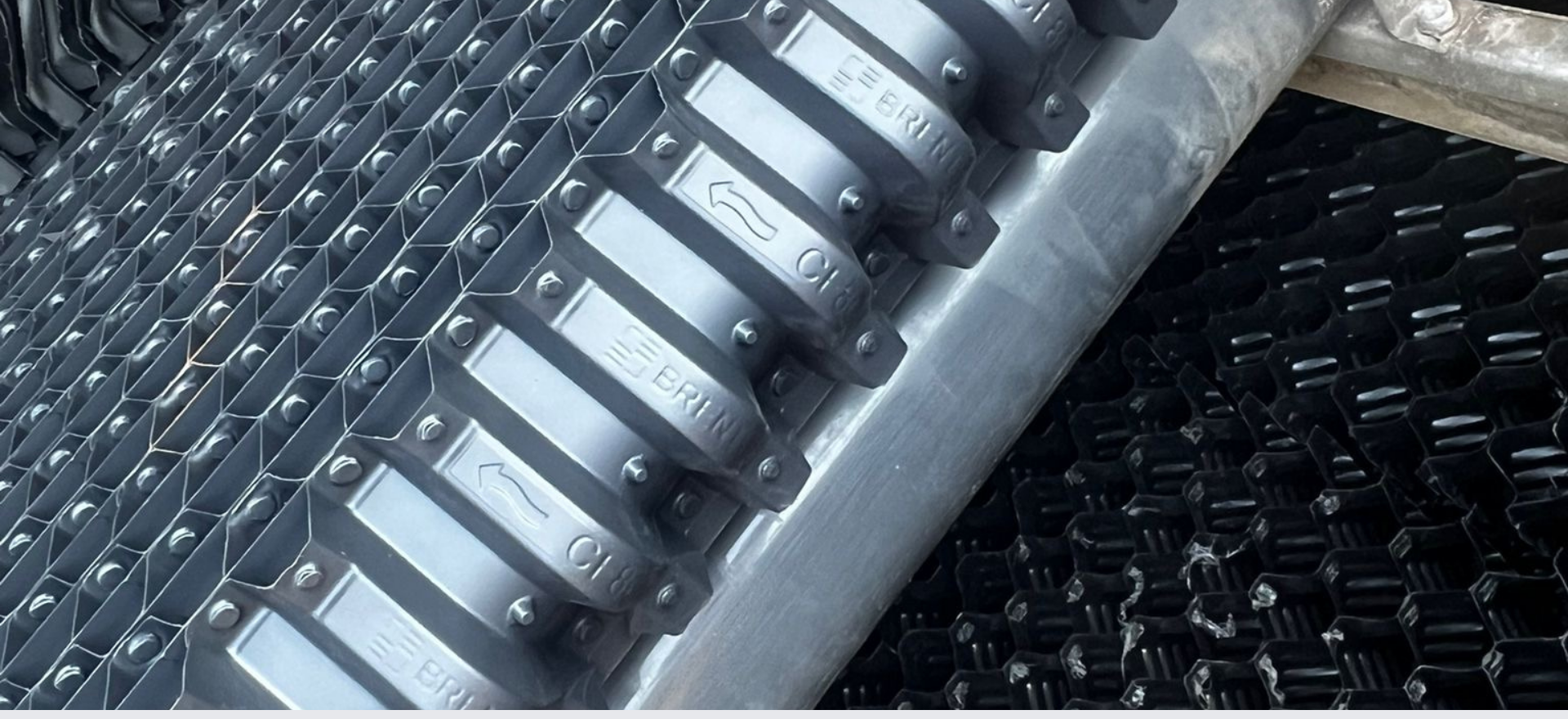 Pentru a asigura performanța pe termen lung a turnurilor de răcire, am utilizat componente premium de la Brentwood Industries, un nume de referință în domeniu. Umpluturile CF1900 Cross-Fluted Film Fill au fost alese pentru suprafața lor optimă de contact și capacitatea de a îmbunătăți transferul termic. Inlet Louvers au fost instalate pentru a proteja împotriva razelor UV, a controla stropii și a optimiza fluxul de aer, iar CF80Max Cellular Drift Eliminators au fost integrate pentru a reduce pierderile de apă și pentru a asigura conformitatea cu normele anti-Legionella.